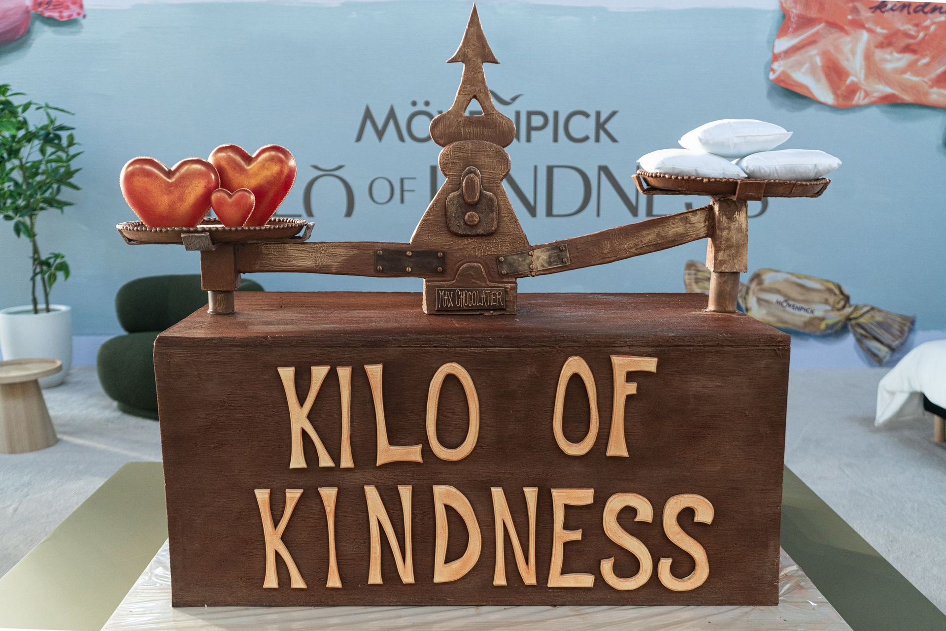 Das 1,5 Meter hohe, 70 Kilogramm schwere Kunstwerk wurde von der Luzerner Manufaktur Max Chocolatier gefertigt. Es symbolisierte die kulinarische DNA der Marke, die in mehr als 130 Hotels weltweit täglich zur kostenlosen «Chocolate Hour» einlädt – und zugleich den Geist der Wohltätigkeitsaktion «Kilo of Kindness».