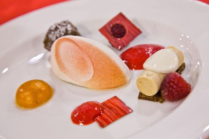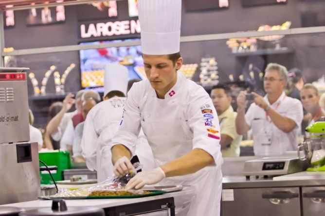 Statt Ausruhen standen nun die Vorbereitungen für das warme Programm an der Reihe. Alles war perfekt geplant und sorgfältig in den Transporter verladen worden. Doch ein Plattfuss am Team-Bus legte der Mannschaft einen weiteren Stein in den Weg. Erst eine Stunde später konnte das Team endlich losfahren und kreierte ein tolles Dreigangmenü für 85 Personen mit der Vorgabe, das Herkunftsland zu präsentieren. Karotten, Polenta, Aprikosen, Käse und Schokolade wurden unter anderem hervorragend in Szene gesetzt. Der anwesende Schweizer Botschafter Thomas Kupfer war ebenso begeistert wie die Jury, was dem Schweizer Team in dieser Disziplin den Sieg vor Singapur und Hongkong einbrachte.