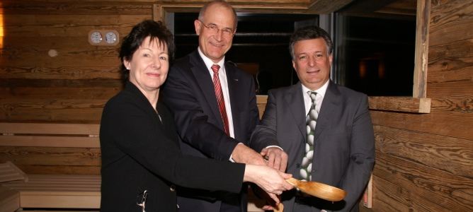 Die Konzeption und Inneneinrichtung des 450 Quadratmeter grossen Wellnessbereiches haben Patrizio und Sonja Salzano selber entwickelt. Beim Bau der Ausstattung und der Wahl der Wellness-Anwendungen haben Salzanos mit dem innovativen Unternehmen Gebrüder Haslauer zusammen gearbeitet. Der bekannte «Wellnesspapst» Paul Haslauer, der bei der Eröffnungsfeier persönlich dabei war, ist bekannt für seine naturnahen und nicht alltäglichen alpinen Saunen und Spa-Anwendungen. Auf dem Rundgang durch den neuen Salzano SPA hatten die geladenen Gäste Gelegenheit, diese alpinen Einrichtungen wie das Brechelbad, die Arvenholz-Biosauna oder das Soft-Pack-System für Anwendungen mit Heu, Alpenkräutern und anderen Naturprodukten zu besichtigen. (Heim Hotelmarketing)