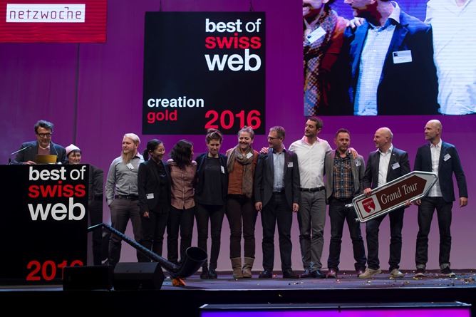 Die «Grand Tour of Switzerland» von Schweiz Tourismus ist der Goldgewinner in der Kategorie «Creation» der «Best of Swiss Web Awards 2016». Der virtuelle Roadtrip führt den User in Form einer Scrolling Experience quer durch die Schweiz und lässt ihn einmalige Aussichten und Sehenswürdigkeiten interaktiv und multimedial in zwölf Sprachen erkunden.