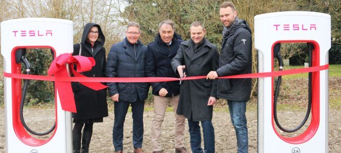 Am Freitag ist beim Romantik Hotel Sternen in Kriegstetten eine der grössten Tesla Supercharger-Ladestationen in der Schweiz eingeweiht worden. Mit dabei waren neben Medienvertretern und geladenen Gästen auch Regierungsrat Roland Fürst, Rémy Wyssmann, Gemeinderat von Kriegstetten, und Gabriele Bryant, Vorstandsmitglied Region Solothurn Tourismus.