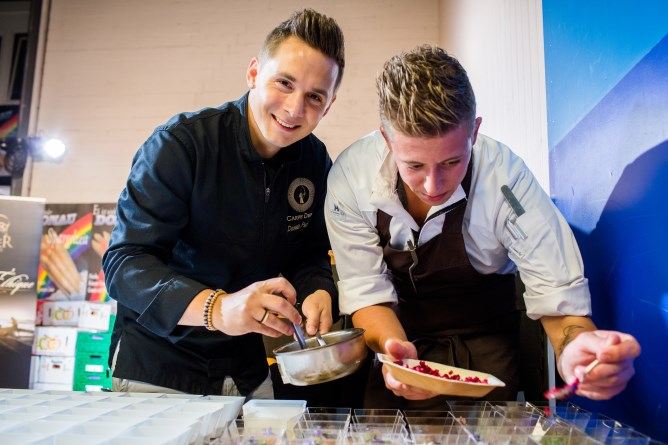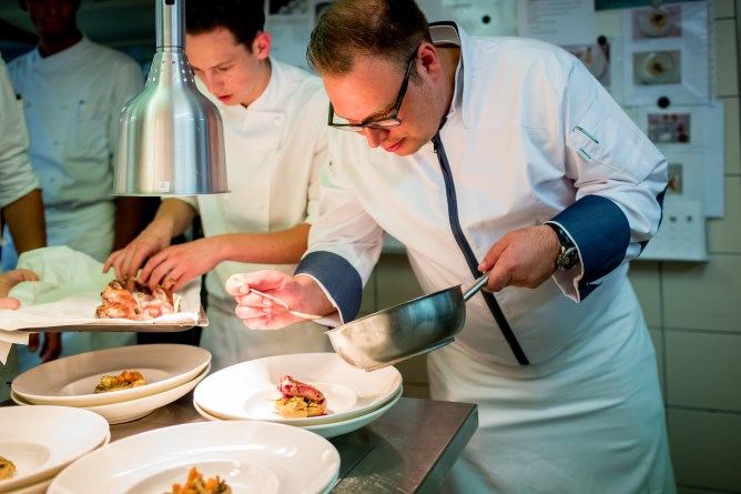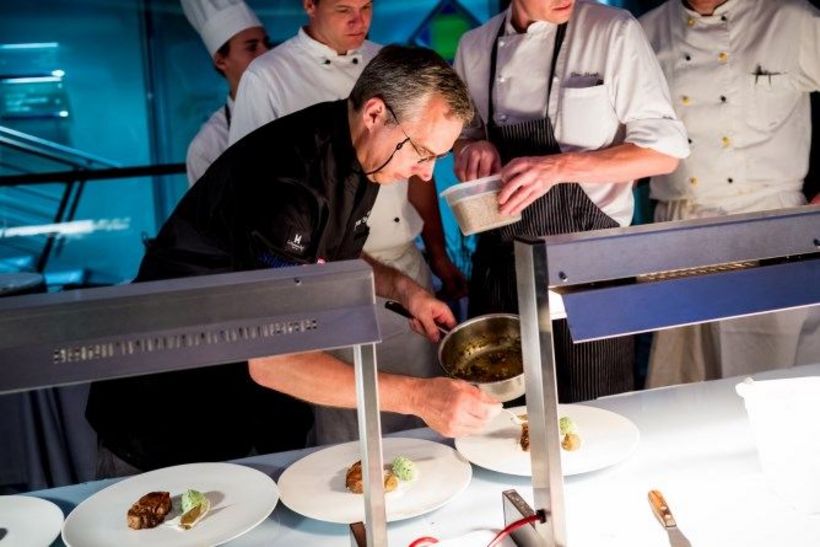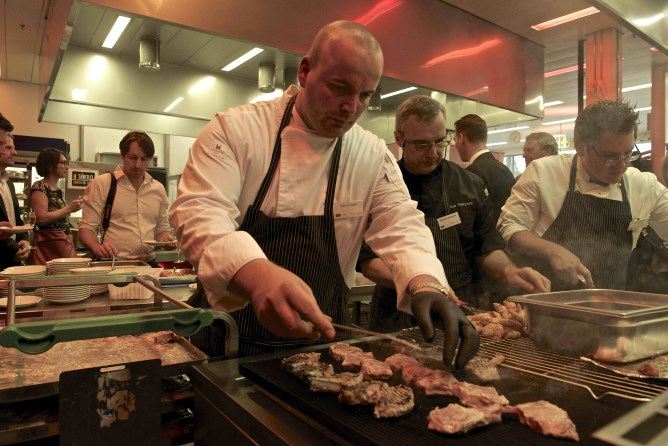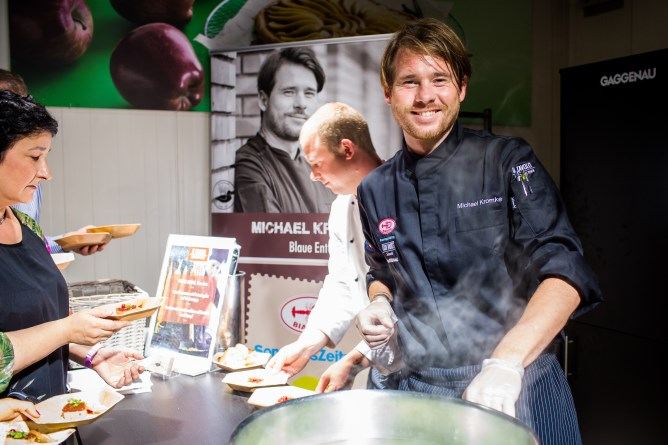 In den Gastgeber-Hotels Baur au Lac, Eden au Lac, Park Hyatt Zürich, The Dolder Grand, Widder Hotel und Storchen Zürich folgte am Donnerstag der Event «Der Rasende Koch». Die sechs Gastköche Sandro Steingruber (Acasa Catering), ArnoAbächerli (Auberge de la Croix Blanche), Paul Stradner (Brenners Park-Restaurant), Sascha Kemmerer (Ifen Hotel),Alexander Moser (Hyatt Regency Istanbul) und Alyn Williams (Westbury Hotel) flitzten dabei von Hotelküche zu Hotelküche, wo sie je einen Gang zubereiteten.