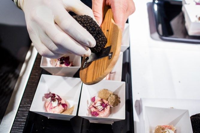 An der aussergewöhnlichenLocation Gate Gourmet am Flughafen Zürich startete am vergangenen Mittwoch bereits die 3. Auflage des «Il Tavolo»-Food Festivals. An der Opening Night verwöhnten die Köche der teilnehmenden Hotels, Maurice Marro & Olivier Rais (Baur au Lac), Sebastian Diegmann (Eden au Lac), Frank Widmer (Park HyattZürich), Fredi Nussbaum (Storchen Zürich), Gion Fetz und Ingo Kühn (The Dolder Grand), Dietmar Sawyere (WidderHotel), und Special Guest Oliver Fischer (Gate Gourmet Switzerland) sowie deren Gastköche, die Gäste mit exquisiten Köstlichkeiten.