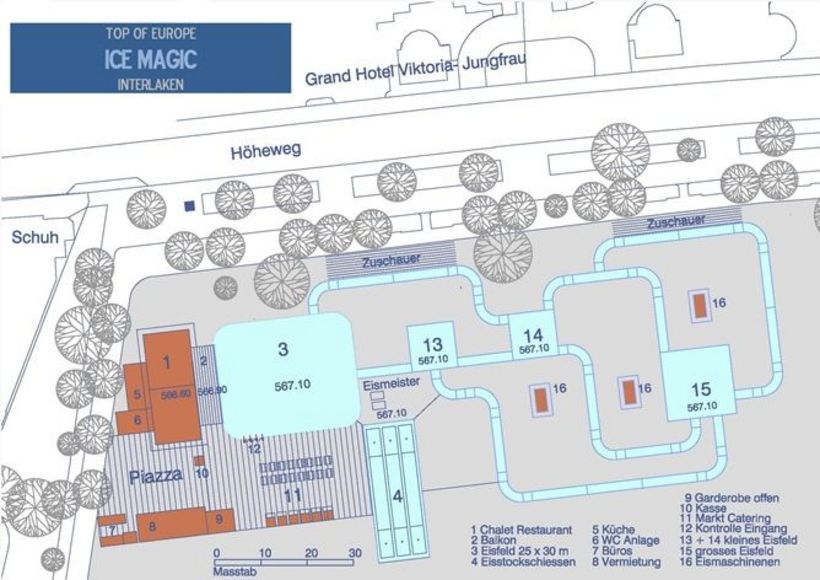 Die Schlittschuhanlage mit einem 750 Quadratmeter grossen Haupteisfeld und drei weiteren Eisfeldern, die durch Runaways verbunden sind, soll das Zentrum Interlakens ab 20. Dezember bis Ende Februar in ein winterliches Wunderland verwandeln. Ein breites Gastronomieangebot mit Iglu-Restaurant, Glühwein- und Marktständen, Winter-Lounge, Schlittschuh-Vermietung sowie ein Spielfeld für Eisstockschiessen komplettieren das Angebot der Anlage auf der Höhematte vor dem Victoria-Jungfrau Grand Hotel & Spa. Mit der «Top of Europe Ice Magic» – nach dem Vorbild des Wiener Eistraums – erhoffen sich die Verantwortlichen eine positive Wahrnehmung Interlakens als Winterdestination und nicht zuletzt auch eine Steigerung der Winterlogiernächte.