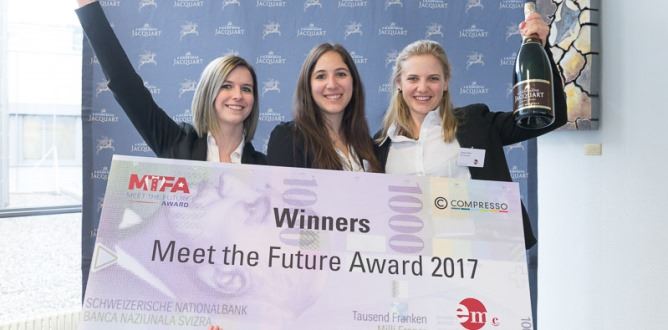 Das Sieger-Team der Hochschule für Technik und Wirtschaft HTW Chur mit Désirée Messmer (Laupen ZH), Fabienne Gut (Zürich) und Fabienne Meyer (Gossau SG) holte beim jährlich ausgeschriebenen «Meet The Future Award» (MTFA) des Branchenverbandes des Event Management Circle (EMC) den ersten Platz.