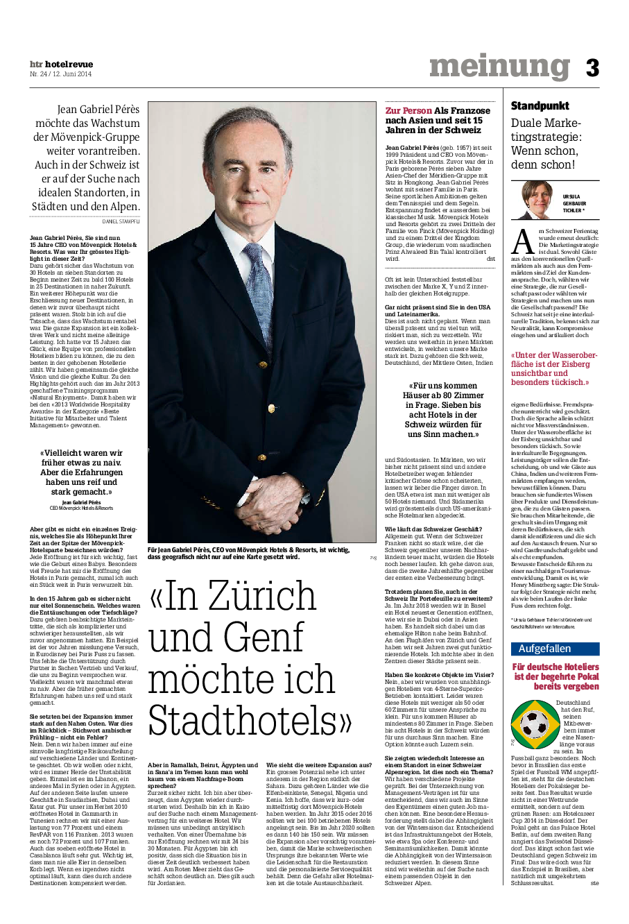 Interview mit Jean-Gabriel Pérès in der htr hotel revue vom 12. Juni 2014