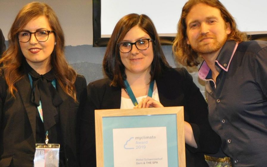 Als «Vorreiter für ganzheitliche Nachhaltigkeit im Hotelbetrieb» erhielt das Stadtberner Hotel Schweizerhof & The Spa einen Award. Das Premiumhotel verfolge einen umfangreichen, strategischen Ansatz, lobt Myclimate. Die Mitarbeitenden werden aktiv in die verschiedenen Nachhaltigkeitsangebote eingebunden. Hotelgäste können ihren Beitrag leisten und gegen einen kleinen Aufpreis klimaneutral im «Schweizerhof »übernachten.