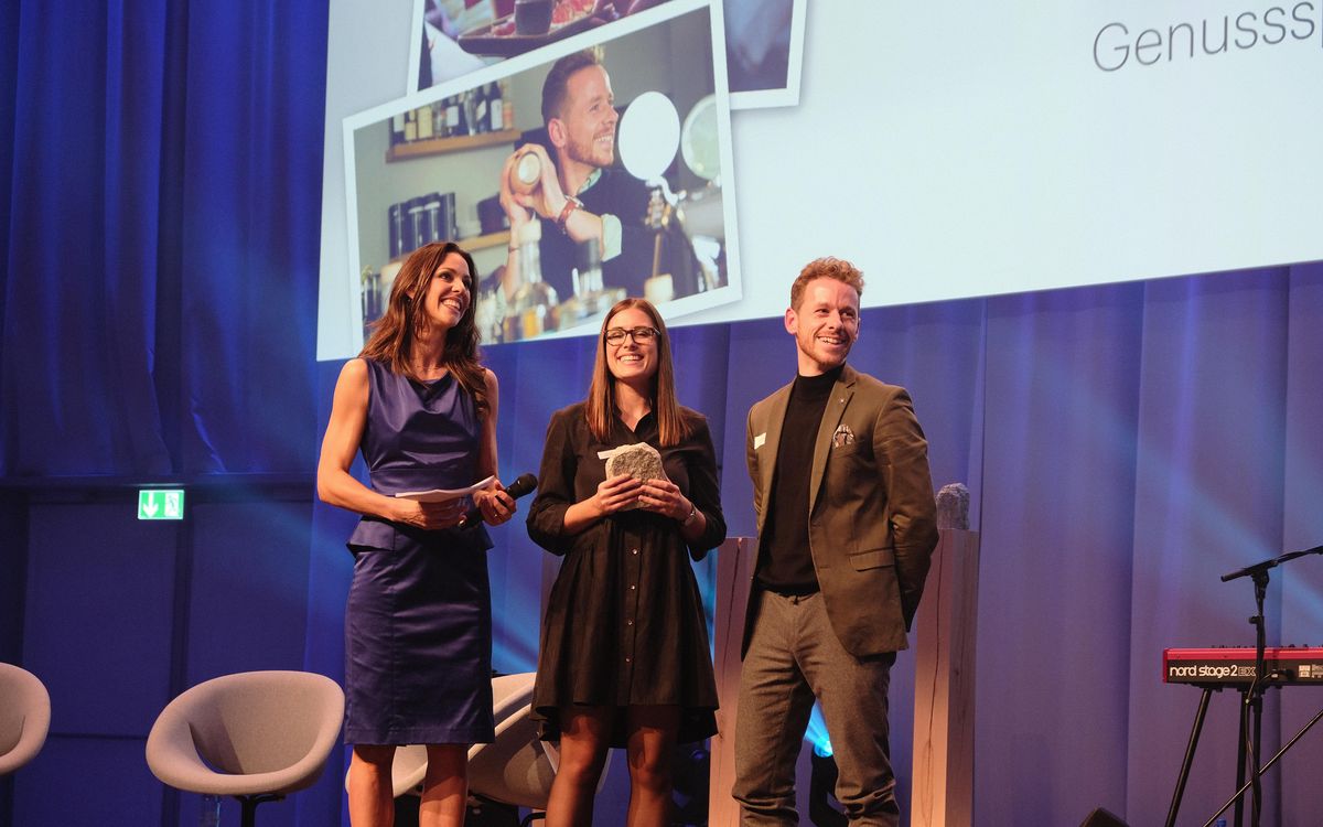 Den «Nachwuchs»-Preis erhielten Laura Stauffer und Sandro Bianchin von der Genussspecht GmbH. Die beiden Absolventen der Hotelfachschule Thun haben in Biel ihren ersten Betrieb, «Lokal», eröffnet. Der Jury gefiel, dass die beiden ihre frischen Ideen mit einem soliden Konzept verknüpfen. Sie vermischten Kulturelles mit Essen und Trinken aus der ganzen Welt und schafften es, verschiedene Kulturen zu verbinden. Gleichzeitig schrieben sie aber der Regionalität von Speisen und Getränken eine hohe Bedeutung zu. «Zwei spannende Persönlichkeiten, die in kurzer Zeit mit Mut und Kreativität in Biel und der Region etwas bewegt haben und mit viel Herzblut im Betrieb arbeiten», so die Jury. Laudator und Hotelfachschuldirektor Christoph Rohn sieht die beiden Jungunternehmer bereits auf gutem Weg, Hotelier-Legende Cäsar Ritz das Wasser zu reichen. Dieser habe sich nämlich zu Beginn seiner Laufbahn vernichtenden Tadel seines Patrons eingehandelt – und wäre zu seiner Zeit ganz sicher nicht für einen Nachwuchspreis nominiert worden. Stauffer und Bianchin gaben das Lob umgehend an ihr Team weiter: «Es braucht viele Menschen im Hintergrund, die zum Erfolg beitragen, die man aber nicht sieht.»