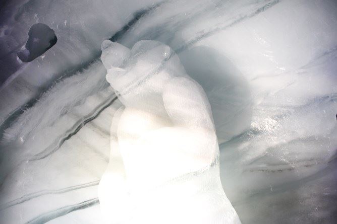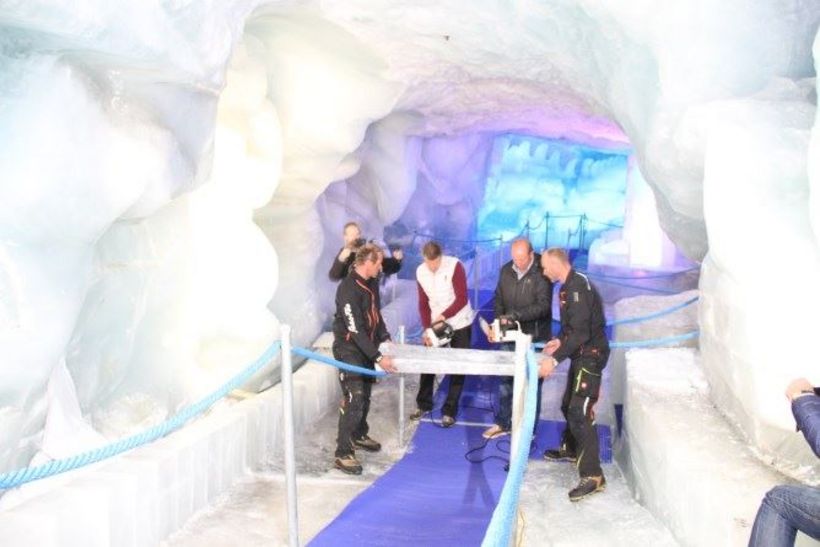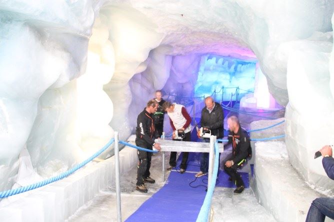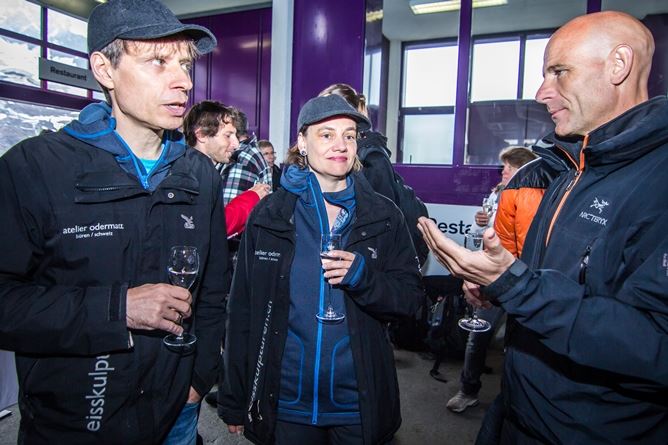 Die Neuinszenierung auf 3500 Metern über Meer war für den Architekten eine besondere Herausforderung. «Die Statik verhält sich bei Eis anders als bei gewöhnlichen Materialien wie Stein oder Beton. Während mehreren Monaten wurden über 10 Tonnen Eisblöcke zurechtgesägt, gehauen und geschliffen und so zu eindrücklichen Skulpturen im Gletscher eingearbeitet», erklärt Alexander Galliker.