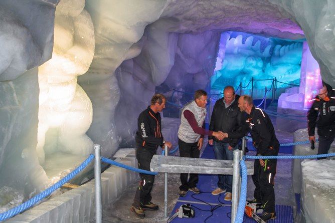 Der Luzerner Architekt Alexander Galliker verantwortete die Inszenierungs- und Gestaltungsarbeiten im Gletscher, die in den vergangenen Monaten durchgeführt wurden. Neu stehen die Themen Mystik, Märchen und Sagen im Zentrum der Eiswelt. Dazu gehören Eisskulpturen sowie eine Lawineninszenierung mit Lichteffekten und einer Druckwelle, die am ganzen Körper spürbar ist.