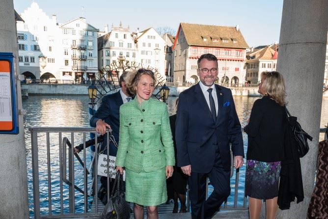 Rund 170 geladene Gäste trafen zur Wiedereröffnung des Anfang Jahr umgebauten Zürcher Traditionshaus Storchen ein. Darunter befanden sich Branchenvertreter, Partner aber auch die Stadtzürcher Präsidentin Corinne Mauch und der Zunftmeister zur Schiffleuten Peter Neuenschwander.
