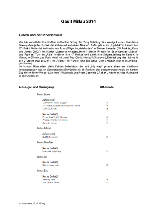 Lesen Sie mehr zum Thema «Gault-Millau 2014» in der htr hotel revue vom 10. Oktober 2013