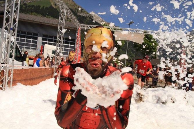 Sommerliches Wetter mit viel Sonne undwarmen Temperaturen bereiteten den Läufern in diesem Jahr harte Bedingungen. Als Neuerung wurde bei der zweiten Austragung in Engelberg Start- und Zielbereich am selben Ort platziert, gespicktmit viel Musik und Verpflegungsmöglichkeiten. Ebenfalls eine Première bedeutete das Hindernis «Angel-Mountain», das noch vor der individuellenZeitmessung überwunden werden musste. Ab dann meldete ein Chip am Bein dem Läufer, dass er im Rennenist.