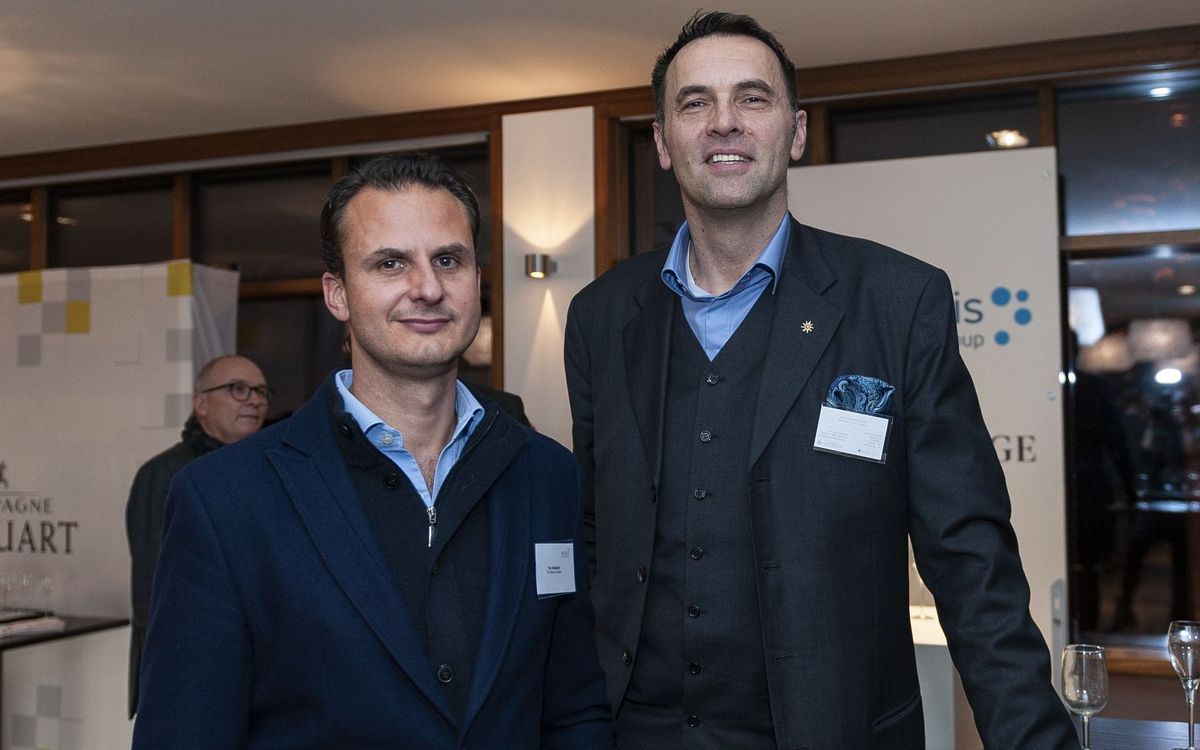 Tim Weiland (l.), The Alpina Gstaad, mit Burkhard Wolter, Waldhaus Flims. Tim Weiland (l.), The Alpina Gstaad, mit Burkhard Wolter, Waldhaus Flims. Bild: htr hotel revue / Miriam Schwarz