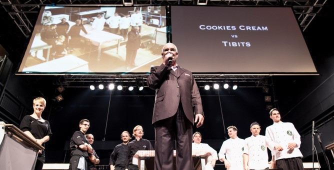 Die Kochteams kreieren mit einem Warenkorb,dessen Inhalt sie erst am gleichen Tag erfuhren, jeweils ein 3-Gang-Menü. Die rund 140 Kitchen Battle-Gäste und eine 5-köpfige Fach- und Promi-Jury, beurteilten jedes Gericht von beiden Teams und kürten anschliessend das Siegerteam des Abends.