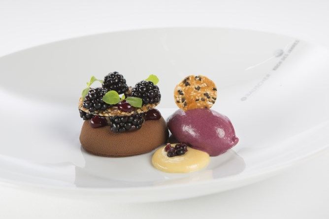 Das Drei-Gang-Menü des Österreichers Stefan Lenz mit einer Vorspeise aus Huchen, Haferwurzel und Haselnuss, einerHauptspeise aus Reh, Essigzwetschge und Löwenzahn und das Dessert aus Waldklee,Kernöl und Moosbeere überzeugte schliesslich die international besetzte Jury.