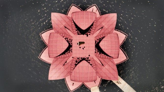 Die überdimensionale Seerose verfügt über einklappbare Blütenblätter, zwei Foodstände, eine Bar sowie eine Flanierzone. Entworfen wurde sie von Dolmus Architekten in Luzern. Bau und Betrieb der Plattform sollen 3,2 Millionen Franken kosten.