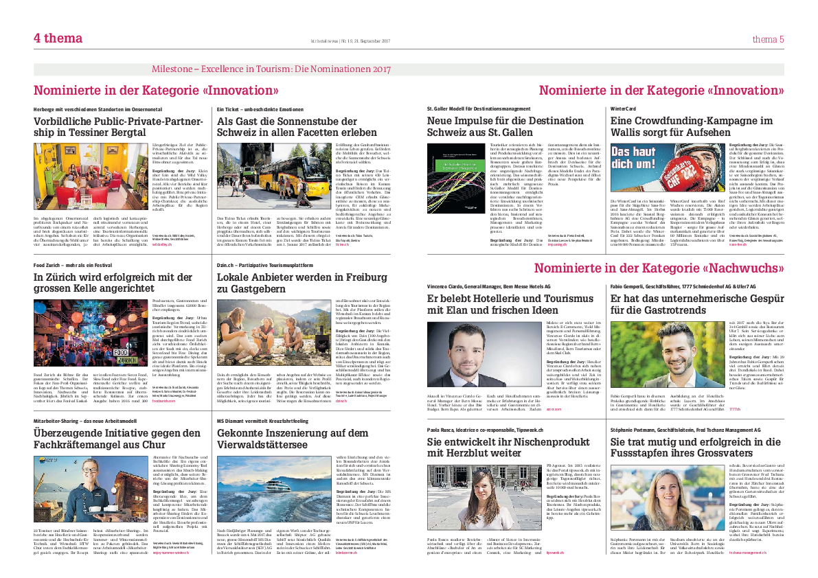 Stark vertreten mit drei Kandidaturen ist für einmal das Tessin, während sich beim «Nachwuchs» gleich vier innovative Hoteliers und Touristiker Hoffnung auf den Sieg machen dürfen. Verzichtet haben die Juroren unter dem Vorsitz von Ruth Metzler-Arnold dagegen auf Nominationen in der Kategorie «Nachhaltigkeit».