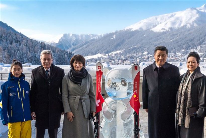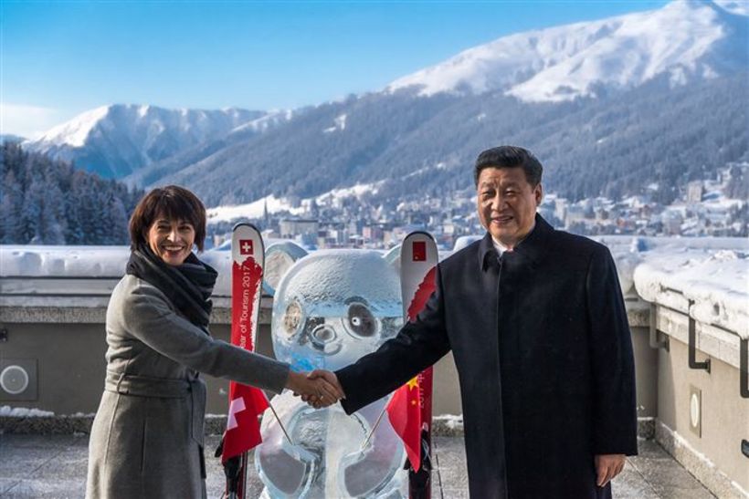 In Anwesenheit von chinesischen und schweizerischen Medienschaffenden kam es in Davos am Rande des WEF zum Fototermin und Handshake zwischen Bundespräsidentin Doris Leuthard und Chinas Präsident Xi Jinping.