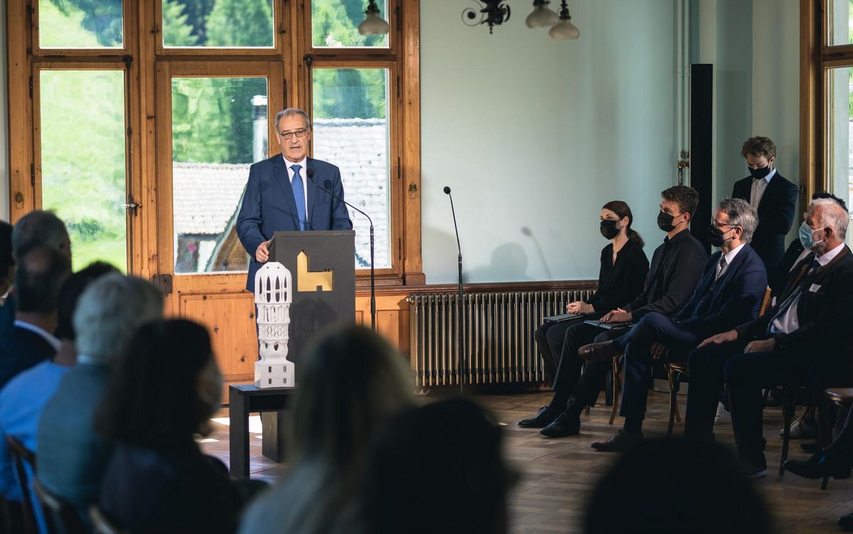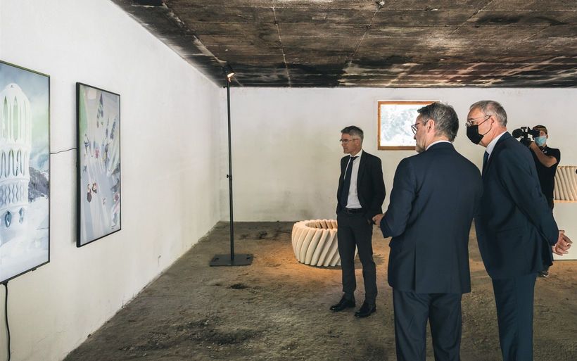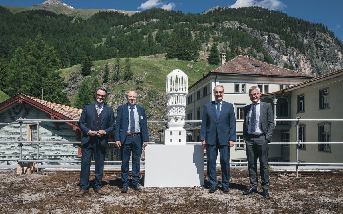 Am Dienstag wurde das Projekt feierlich von Bundespräsident Guy Parmelin, Mario Cavigelli, Regierungspräsident von Graubünden, Detlef Günther, Vizepräsident für Forschung der ETH, und den Architekten Benjamin Dillenburger und Michael Hansmeyer sowie den Gemeindepräsidenten der Regionen Albula und Maloja in Mulegns präsentiert der Öffentlichkeit präsentiert.