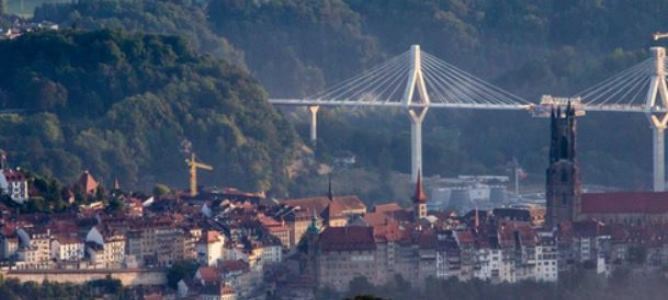 Über die Zähringerbrücke erreichen heute Autos das Burgquartier und die Freiburger Altstadt von Osten her. Die Schliessung dieser Brücke über die Saane gehört zu den flankierenden Massnahmen zum Bau der Poya-Brücke, welche etwas weiter nördlich das Freiburger Stadtzentrum neu erschliessen soll. (av/sda)