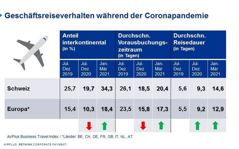 Die Lufthansa-Tochter Airplus bietet Produkte für das Bezahlen und Abrechnen von Geschäftsreisen an, darunter Kreditkarten. Die Zahlen sind eine Auswertung des AirPlus Business Travel Index. AirPlus wertete dazu die über den Zahlungsdienstleister abgerechneten Buchungen aus Deutschland, Österreich und Schweiz, Frankreich, Belgien, Grossbritannien, Italien und den Niederlanden aus.