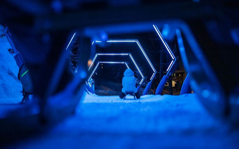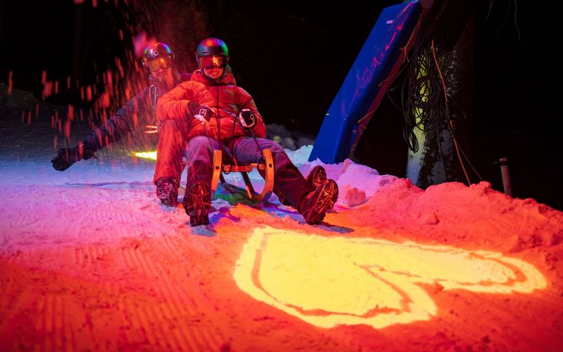 Die Schlittel Fans erwartet im oberen Streckenteil ein klassisches Nachtschlitteln mit dunkleren und helleren Passagen, um sich einzuwärmen. Im unteren Teil tauchen nach und nach multisensorische Lichtinstallationen auf, die dem Schlittelnden nicht nur Unterhaltung, sondern auch eine Challenge bieten.