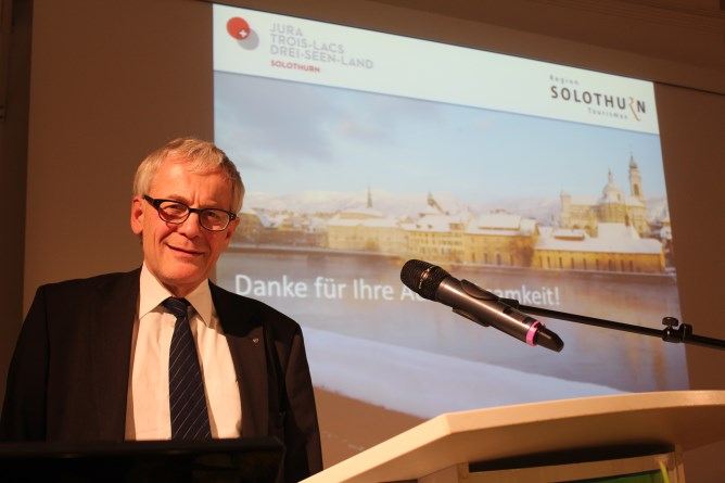 Über «Zarte Bremsspuren» in der Stadt-Hotellerie sprach René Hohl, Präsident von Region Solothurn Tourismus, in seiner Begrüssung. Direktor Jürgen Hofer lieferte die Zahlen dazu: 2015 waren es 3, 8 Prozent weniger Übernachtungen. Die Gesamtsanierung der «Ramada»-Zimmer sorgte aber dafür, dass die Zahl der Übernachtungen nicht noch kleiner ausfiel. Esther Gassler und Stadtpräsident Kurt Fluri wollen für den Tourismus in Solothurn gute Rahmenbedingungen schaffen. Dazu gehört, «über das Sonntagsverbot nachzudenken», sagte Fluri.