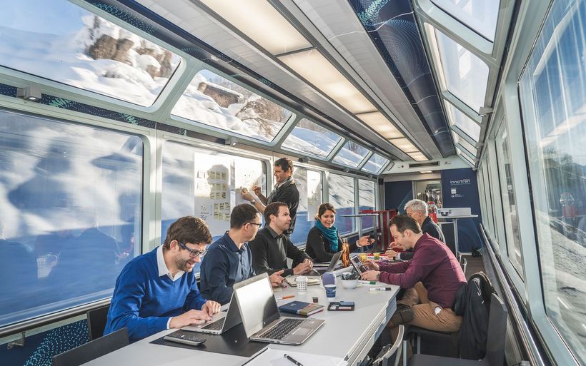 Ab morgen Freitag ist der inspirierende Bahnwagen unterwegs: Der modern eingerichtete Innovations- und Sitzungsbahnwagen der Rhätischen Bahn (RhB) soll neuen Schwung in die Schweizer Meeting-Kultur und zugleich kreative Ideen ins Rollen bringen. Inspiriert von der vorbeiziehenden Bündner Bergwelt können Teams mit bis zu 15 Teilnehmenden unternehmerische Schlüsselfragen, Innovations-Workshops oder klassische Sitzungen unterwegs abhalten. Der InnoTren ist in Zusammenarbeit mit der Hochschule für Technik und Wirtschaft (HTW) Chur, Zühlke sowie der RhB entstanden.