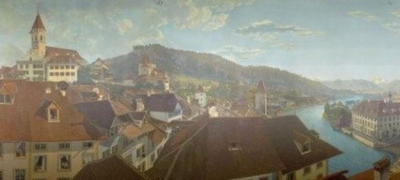 Geschaffen wurde das 7,5 mal 38 Meter grosse Bild in den Jahren 1809 bis 1814 vom Basler Kleinmeister Marquard Wocher. Ausgestellt ist es seit den 1960-er Jahren in einer eben erst erneuerten Rotunde im Thuner Schadaupark.