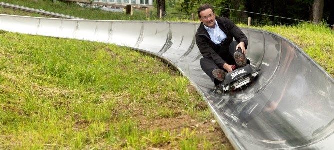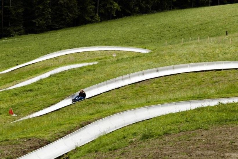 Neben der neu eröffneten, 500 Meter langen Rodelbahn mit einer maximalen Neigung von 18 Prozent, können die Besucher zudem mit einer Kleineisenbahn fahren, mit einer Kugelbahn spielen, auf den Aussichtsturm steigen oder auch im «Kids Car» rennen fahren. (htr/it)