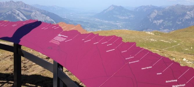 Informationsreich seien auch Tafeln, die am Wegrand stehen und die geologische Besonderheit des Welterbes darlegen. Von verschiedenen Punkten gäbe es Einblicke in das UNESCO-Welterbe Tektonik Arena Sardona. Höhepunkt sei aber der Aussichtspunkt auf 2275 Meter über dem Meer.