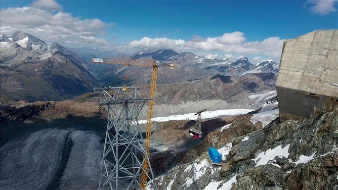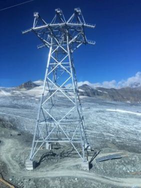Für die Montage der 40 Meter hohen Stahlstütze musste dann auf 3‘775 m ü.M. gar ein zusätzlicher 52 Meter hoher Kran installiert werden. Trotz all diesen (logistischen) Herausforderungen, konnten die Stützenarbeiten aber termingerecht und ohne nennenswerte Zwischenfälle beendet werden. «Stütze gut – alles gut».