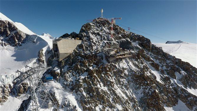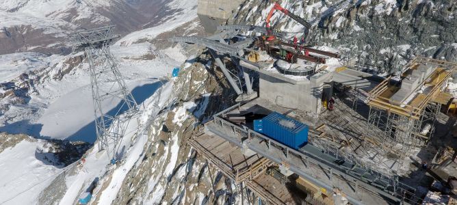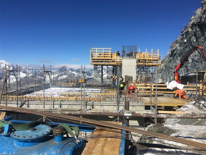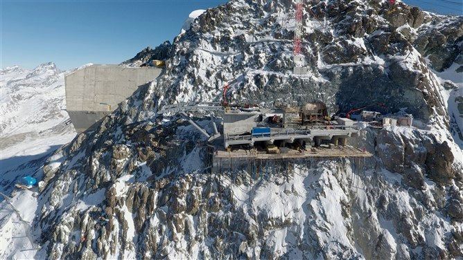 Fangen wir ganz oben an: An der Bergstation auf dem Klein Matterhorn (3‘883m ü.M.) konnten dank dem unermüdlichen Einsatz der Arbeiter bereits im Frühling die Baumeisterarbeiten wieder aufgenommen werden.