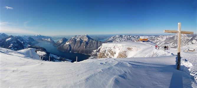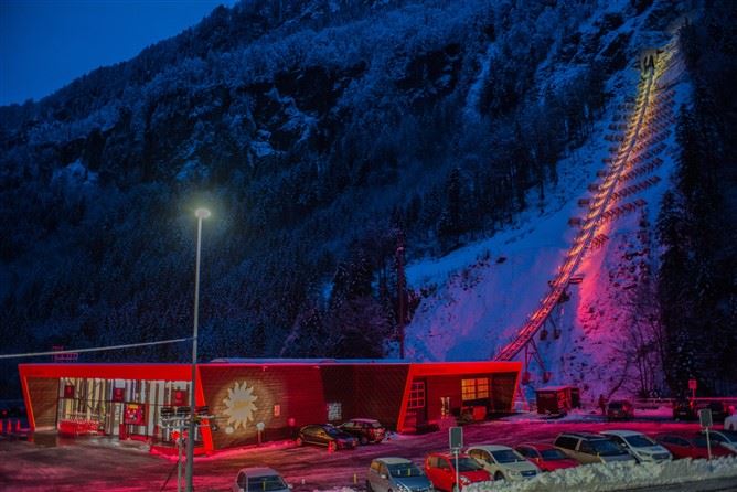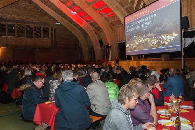 Rund vier Minuten dauert die Fahrt. Oben auf dem Stoos, wo 150 Menschen dauerhaft wohnen, brennen Fackeln im Schnee und weisen den Weg in die Turnhalle. In der Wärme steigt Bundespräsidentin Leuthard auf die Bühne und bescheinigt den Planern Mut. Es gäbe viele Seilbahnen, die nicht rentieren. «Doch der Verwaltungsrat, der Kanton und die Region glauben an die Zukunft. Ich bin überzeugt, dass sich das auszahlen wird.»