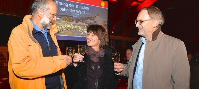 Die Bahn sei nicht nur von touristischem Nutzen, sie sei auch als Verbindung für die Bewohner des Bergs mit dem Tal ein ganz wichtiger Service. «Es zeichnet die Schweiz aus, dass man für alle eine Leistung anbietet», sagte Leuthard. Ihr Departement habe zum Projektstart 54 Bundesordner erhalten – und fristgerecht die Bewilligung erteilt.