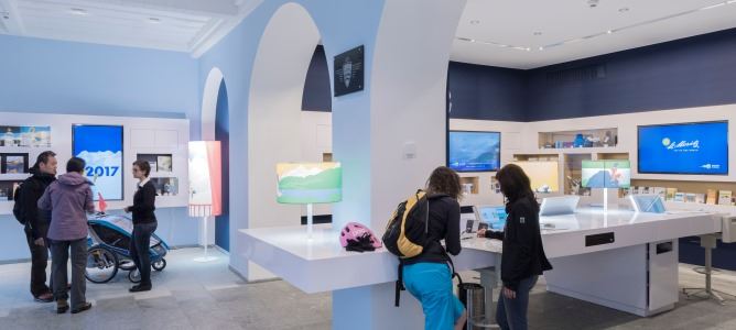 Bisher wurden die jährlich beinahe 20'000 Gäste der Tourist Information St. Moritz Dorf an einem nicht mehr zeitgemässen Informationsschalter bedient. Mit der neuen, offenen Raumaufteilung und der entsprechenden Inneneinrichtung soll die Distanz zwischen den Gästen und Gästeberatern beseitigt werden, wie es in einer Mitteilung der Tourismusorganisation heisst. Die Mitarbeitenden wurden der neuen Situation entsprechend zu Ausflugsberatern und Geheimtippvermittlern geschult, um die Informationssuchenden auf unkomplizierte Art zu empfangen und beraten.